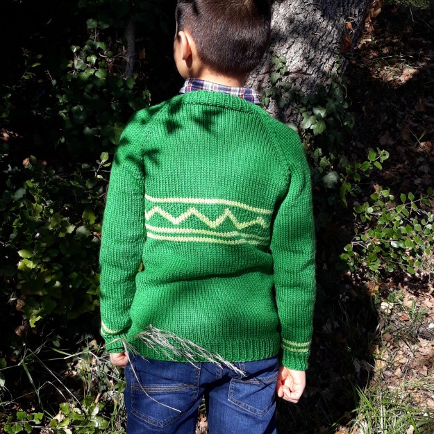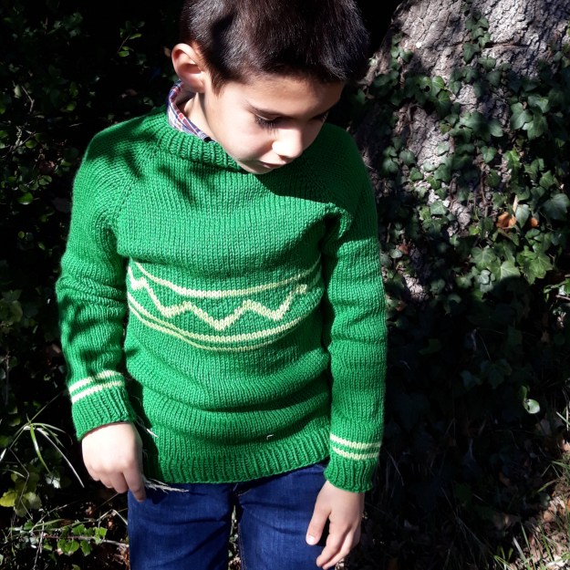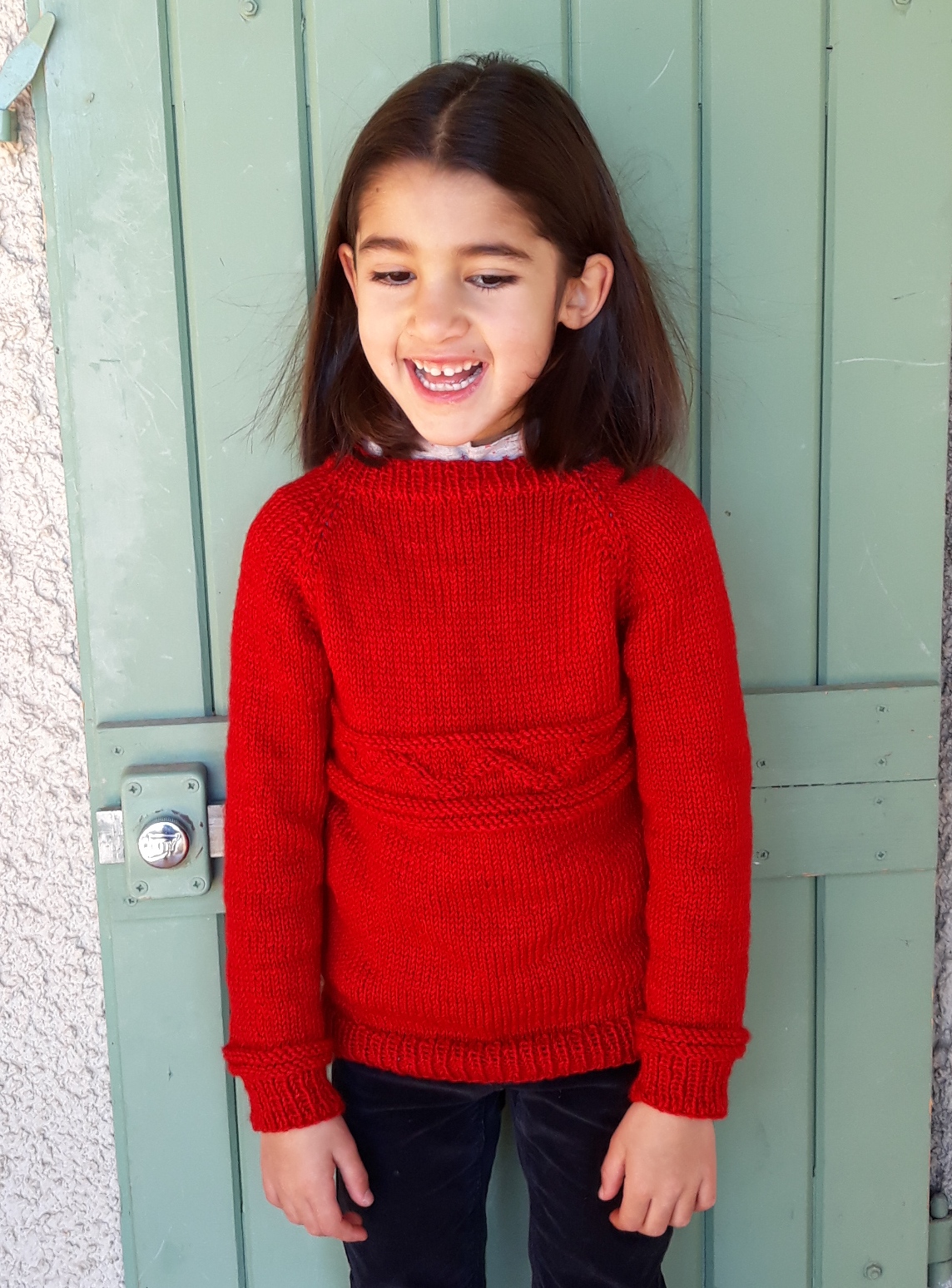 C’est un modèle très simple à faire. Il se tricote de haut en bas, avec des emmanchures raglan et sans couture. Il est quasiment tout en jersey endroit. Il est donc tout à fait accessible aux débutantes et peut être un bon modèle pour essayer la construction « top down ».