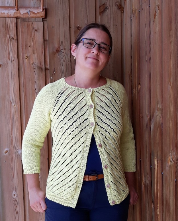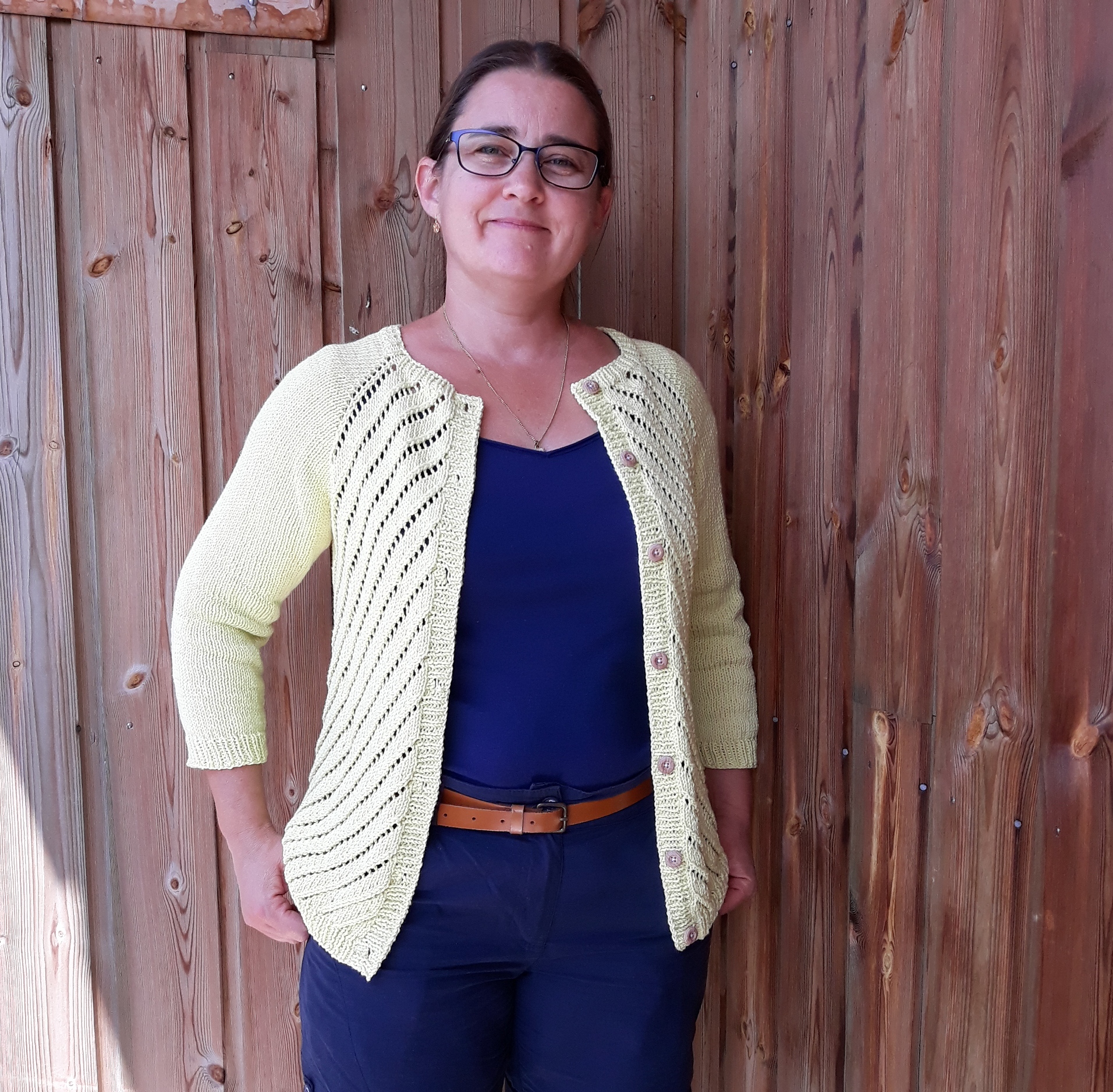 Je l’ai d’abord créé et tricoté pour ma fille et, une fois fini, j’ai eu envie de m’en faire un aussi. Mes testeuses, qui avaient elles aussi très envie d’une version adulte, m’y ont encouragée et je ne regrette absolument pas. J’adore mon gilet ! Il est très agréable à faire et à porter.