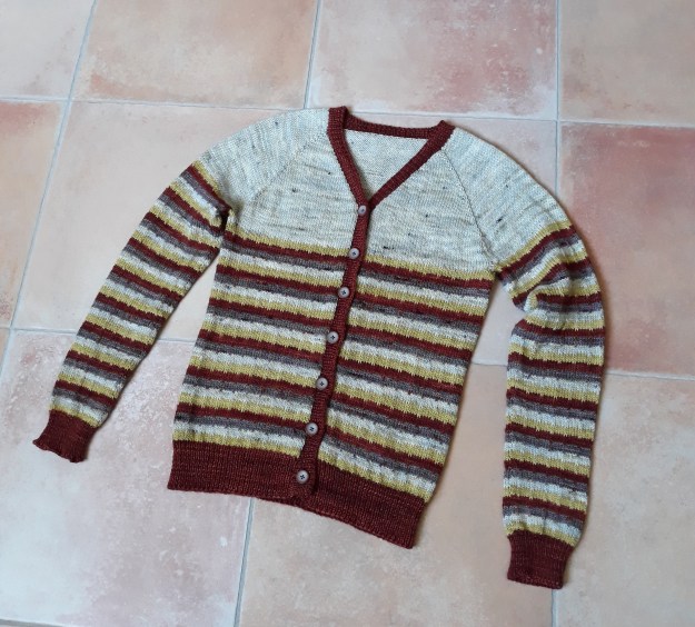 Ces rayures me plaisent beaucoup et j’ai eu envie d’avoir moi aussi un gilet avec ce même motif de rayures. En plus, je n’avais pas encore de gilet à rayures…