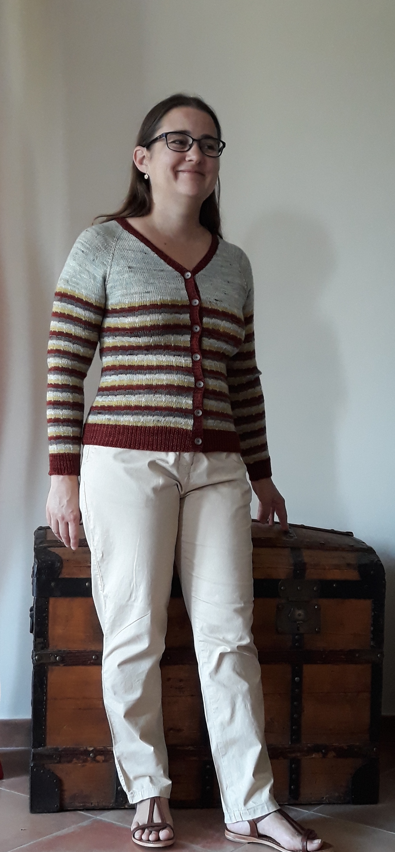 Ces rayures me plaisent beaucoup et j’ai eu envie d’avoir moi aussi un gilet avec ce même motif de rayures. En plus, je n’avais pas encore de gilet à rayures…