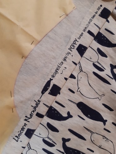 Pour le tissu, j’avais ce beau sweat « narval » (acheté chez Ikatee, je crois), que je destinais à mon fils, lequel n’en a pas voulu. Tant pis pour lui ! Mon mari a essayé son sweat et il en est ravi.