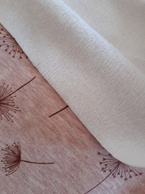 Il est fait dans un tissu sweat avec un très bel imprimé pissenlits et un revers d’une douceur incroyable. Un vrai doudou. Je suis presque jalouse…