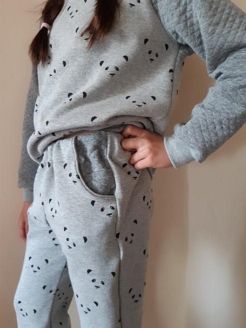 Voilà ma fille pourvue d’un nouveau jogging, parfait pour cocooner à la maison…