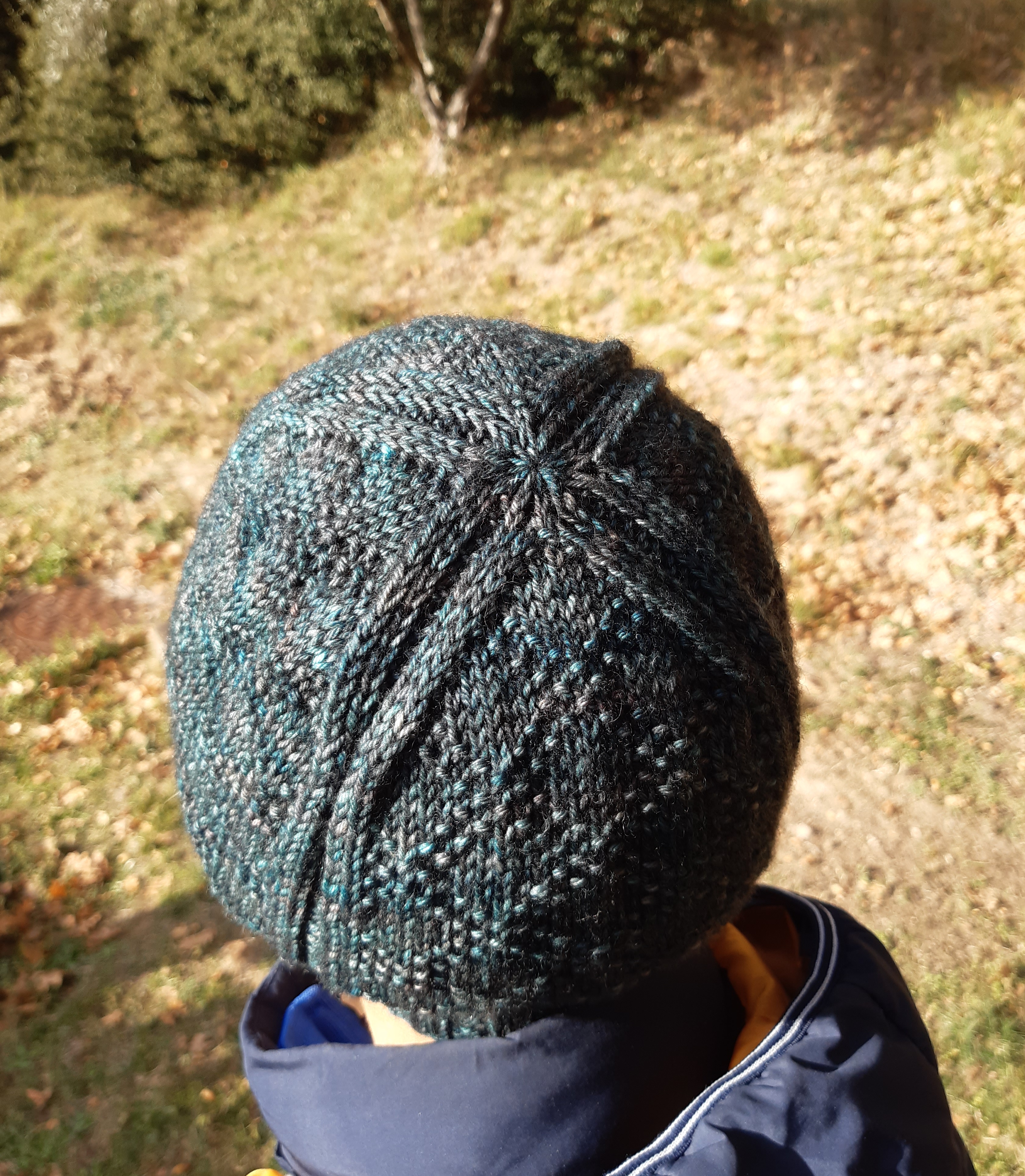 Il y a 5 tailles proposées, en fonction du tour de tête. Ce bonnet peut donc aller à toute la famille, des enfants aux adultes. Ici, c’est mon fils qui porte le prototype.