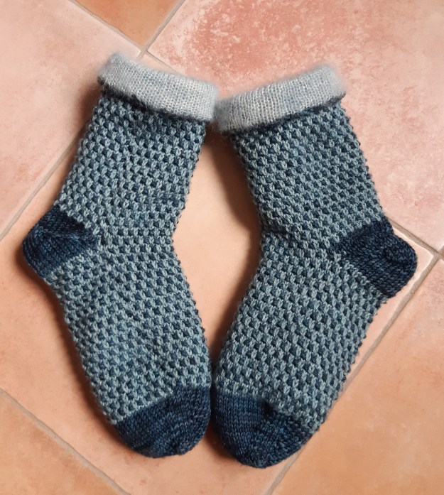 Entre le mérinos à l’extérieur et le mohair et soie à l’intérieur, ces chaussettes sont vraiment des chaussettes de luxe ! C’est doux, c’est chaud, c’est moelleux…