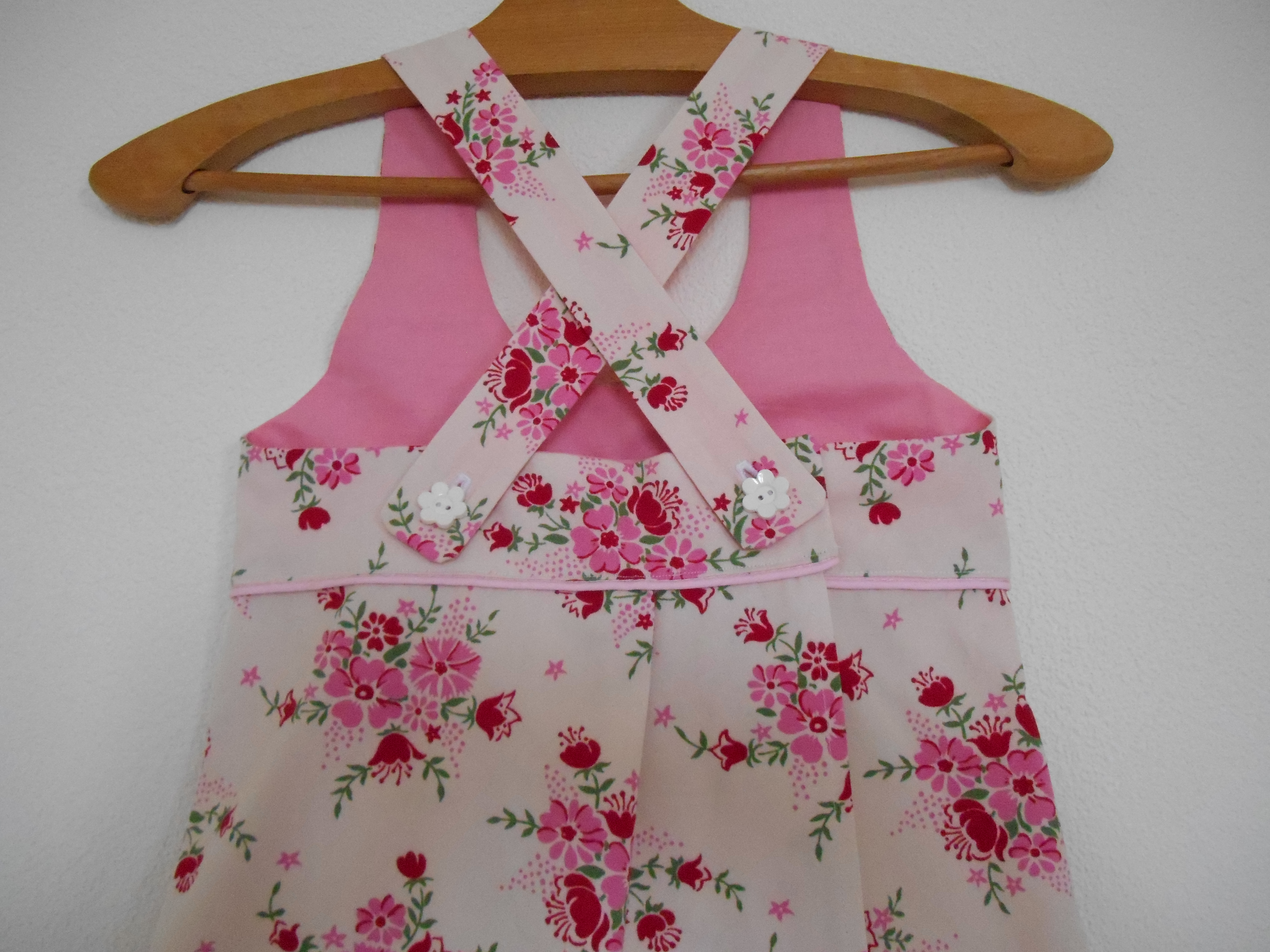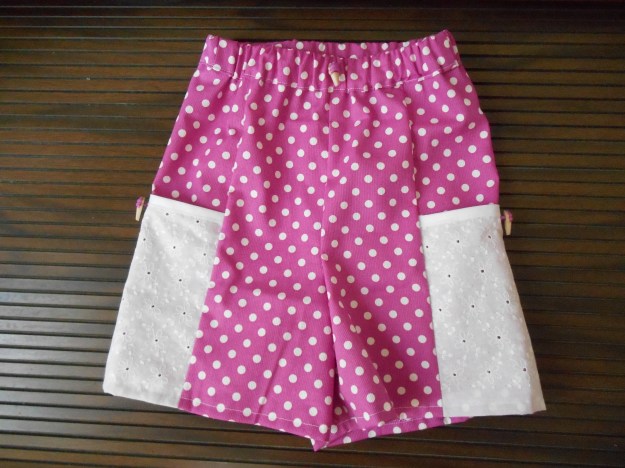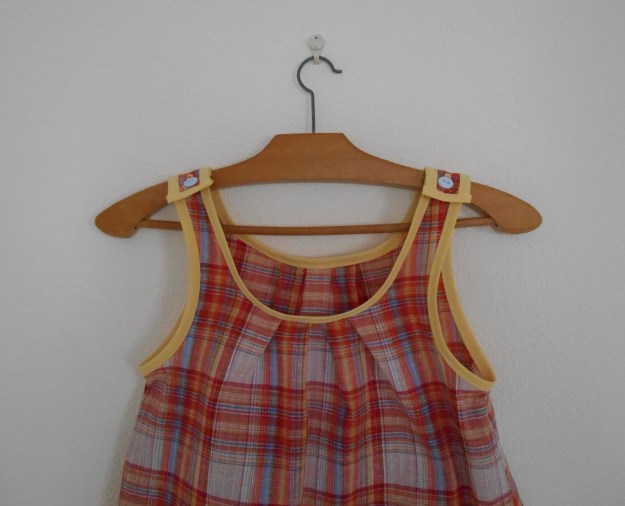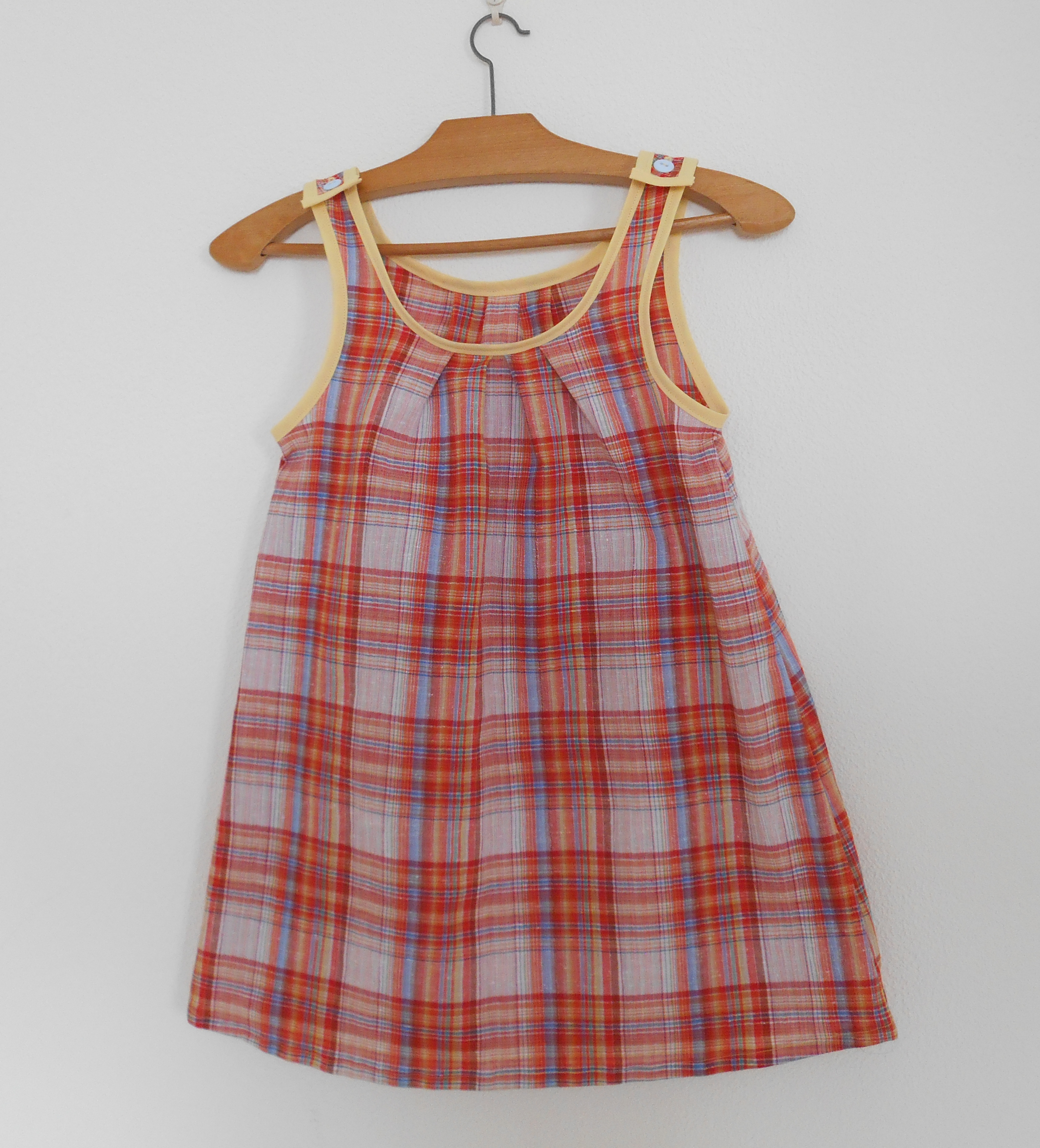 Comme il me restait du tissu et que la miss avait flashé dessus quand elle l’avait vu (et je la comprends !), je lui ai aussi fait une jupe. Même tissu, même ruban de pompons, mais autre modèle de jupe (modèle perso en fait) pour avoir une jupe à volants et qui tourne…