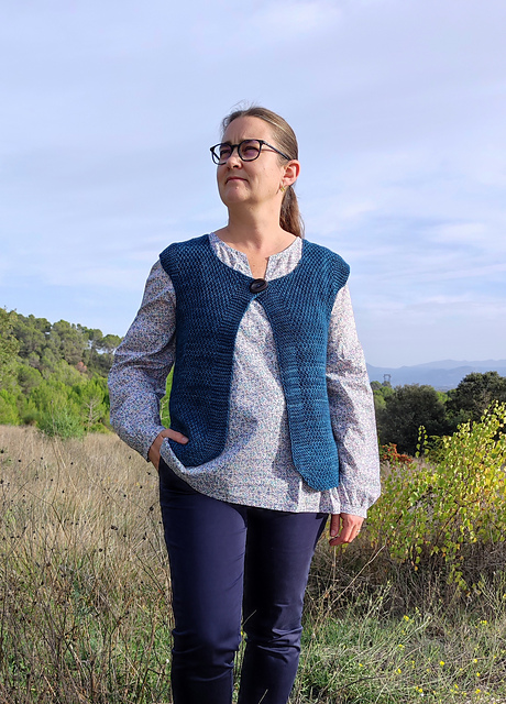 Voici donc Bergère, mon nouveau modèle. Un gilet sans manches pour femmes, inspiré des fameux « gilets de berger », mais revisité et modernisé.