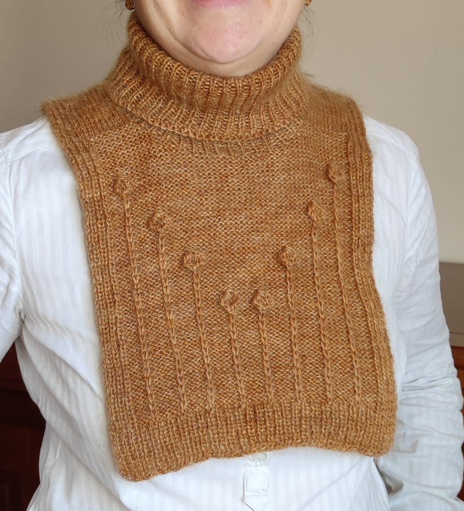 Comme vous pouvez le voir, cette couverture reprend les codes et les motifs des autres modèles Tartanesque: les côtes 2/2 et les deux motifs de croisillons, qu’on retrouve par exemple dans le châle Tartanesque.
