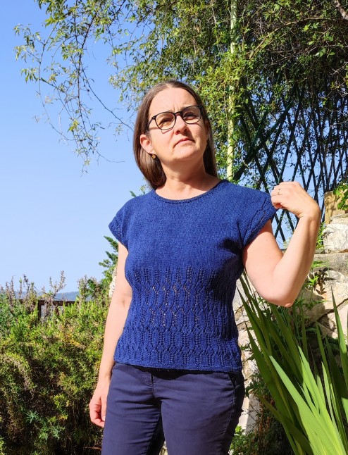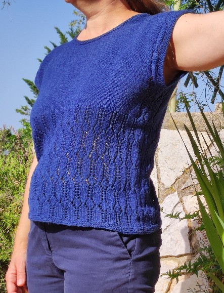 Je me suis encore amusée avec les lignes de jersey envers, comme pour le pull et le gilet Simiane. (et je vous annonce déjà que ce n’est pas fini…)