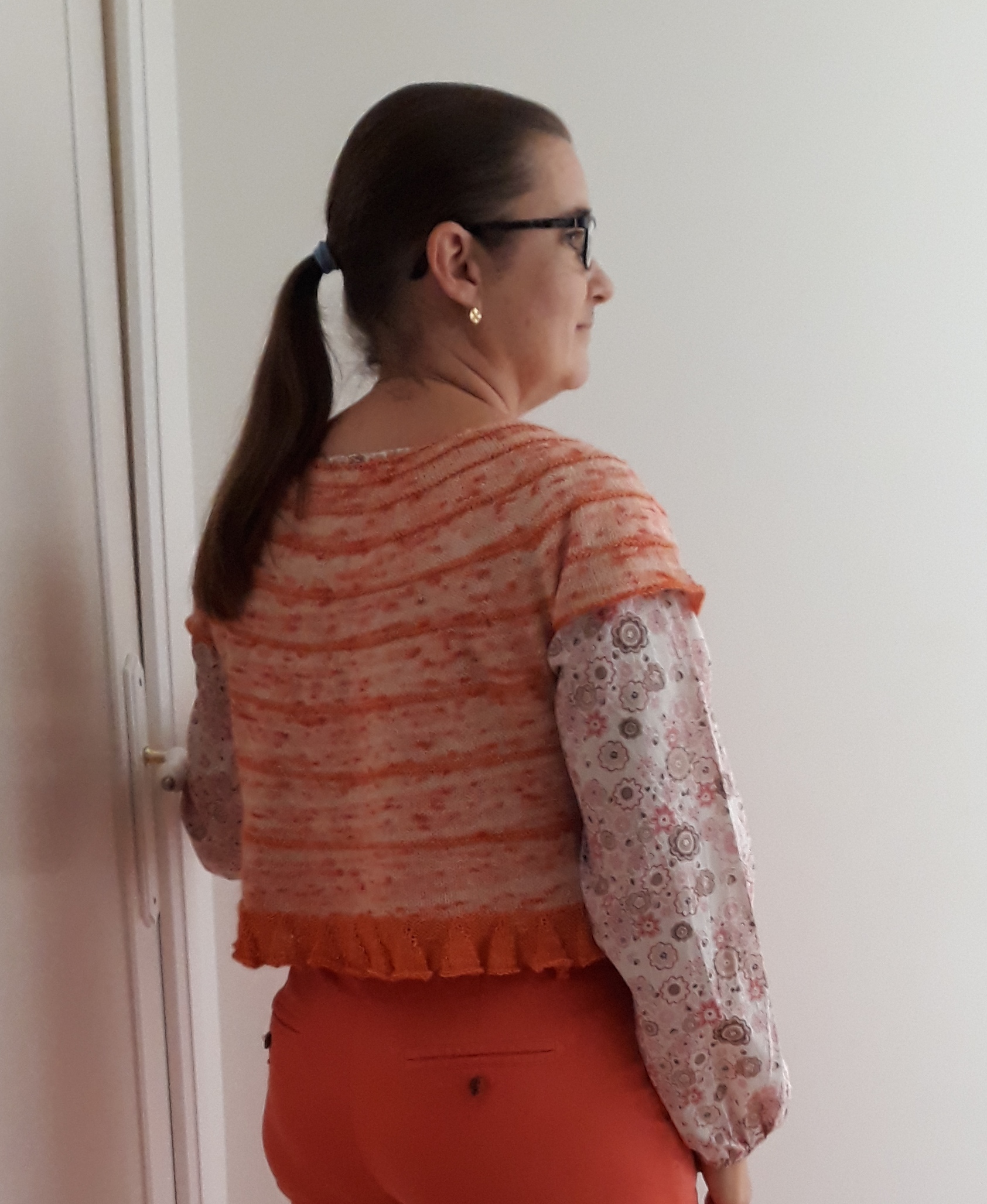 J’ai voulu un top simple et raffiné, facile à réaliser et à porter, avec juste ce qu’il faut de détails pour le rendre unique. Ces petits détails, se sont ces finitions en icord nouée à l’encolure, aux manches et en bas du corps à gauche.